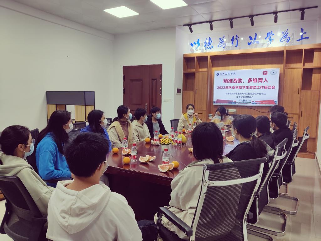 为加强管理学院和粤港澳大湾区智慧冷链产业学院班级资助负责人对国家资助政策的认识,以及对本学期总体资助工作进行总结和反馈,同时也为下学期更好的开展相关资助工作,更好地为同学们服务,2022年秋季学期学生资助工作座谈会于2022年12月9日在一教D203举行,出席本次座谈会的有管理学院学工办主任张永训、管理学院学工办副主任姚舜、粤港澳大湾区智慧冷链产业学院学生资助经办人张智利,本次座谈会由管理学院学工办副主任余远远老师主持,以及两院受资助学生代表参加会议。