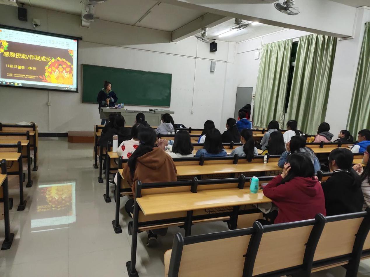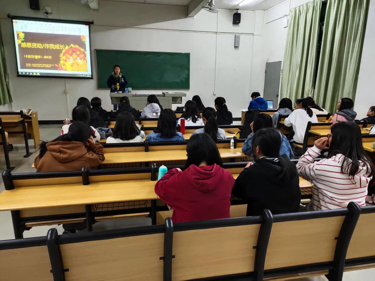 2019年12月9日,辅导员吴老师与19级财管B1-B4班获得国家助学金资助和助学贷款的29位同学在二教C403进行了一场“感恩资助 伴我成长”的座谈会。