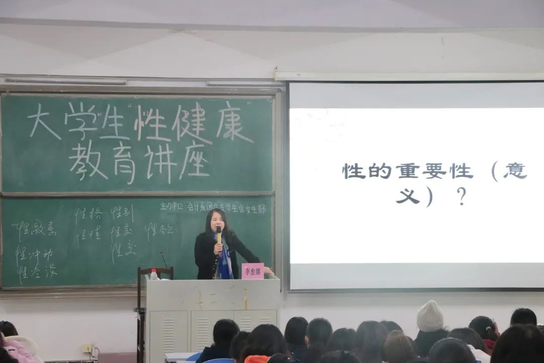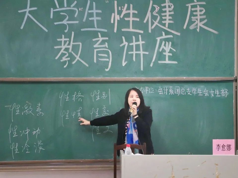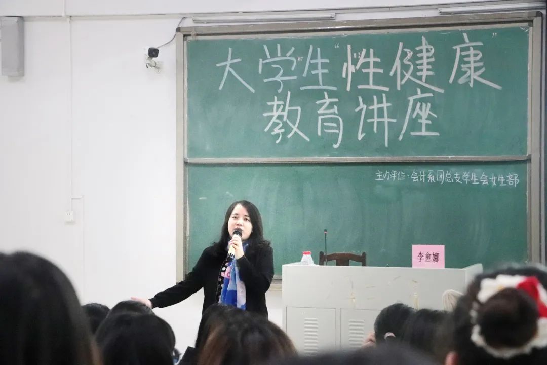 李愈娜老师主要从大学生性知识了解程度、大学生学习性健康教育的必要性、性无知的危害以及如何在性行为中自我保护这四大方面进行演讲。
