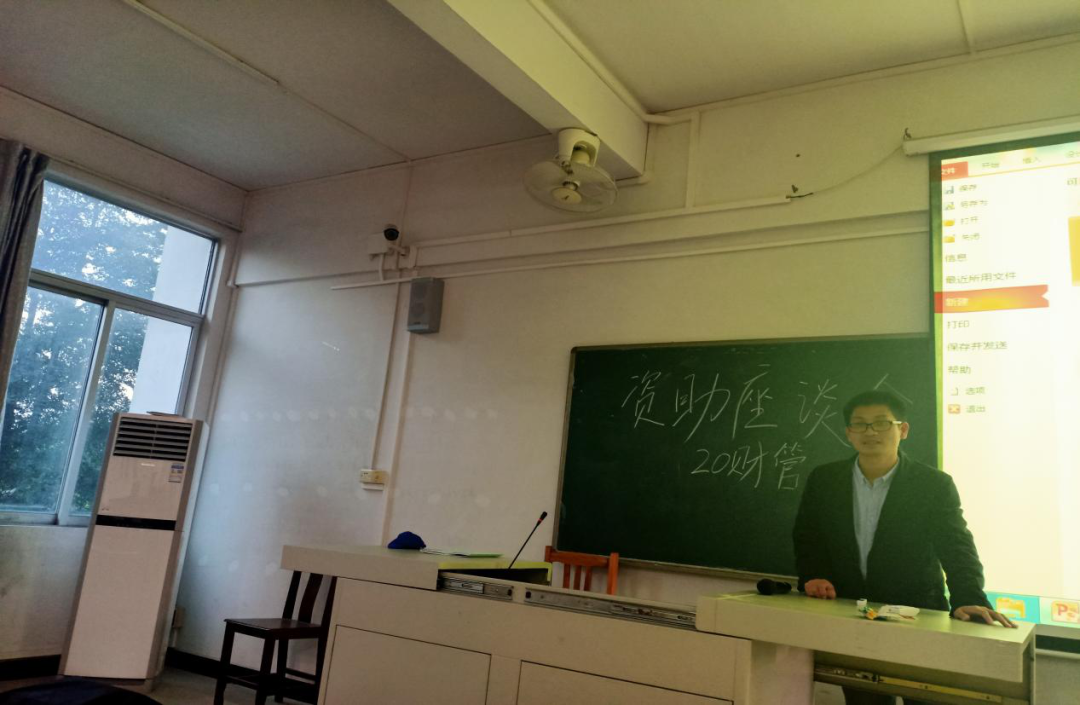 2020年12月8日下午16:00,我系辅导员黄国威在一教D301召开了一场以“感恩资助,伴我成长”为主题的座谈会,20财务管理B6和B7班获得2020年国家助学金和校内助学金的学生均参加了此次座谈。