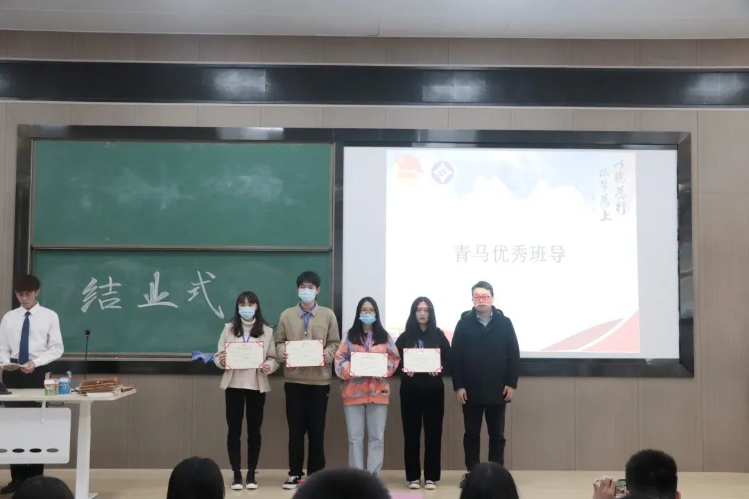 第二项——颁奖环节。在短暂的三天学习与实践中,一班和六班获得此次青马工程优秀班集体的荣誉称号。另外,其中4名班导获得青马优秀班导称号,12名学员获得青马优秀成员称号。