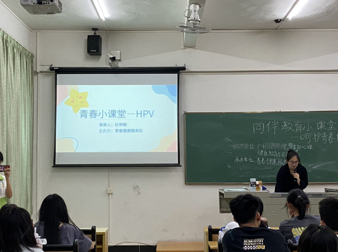 讲师杜伊昵给我们带来《青春小课堂—HPV》,她让同学们认识HPV及其危害性,以及HPV可能会引起的疾病、预防感染HPV的方法。这让同学们敲响预防HPV的警钟,还能够用科学的方法保护自己,这对于促进同学们身心健康发展具有重要意义。