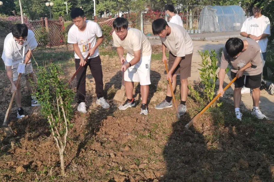 随着时间的推移,同学们也从刚开始的生疏逐渐变得熟络起来。挖坑、栽植、回填、覆土、浇水,大家相互配合,相互帮助。