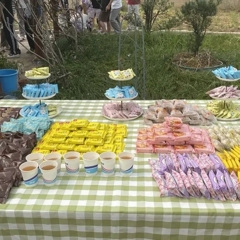活动现场不仅有好听的音乐,还有饮料和点心哦。