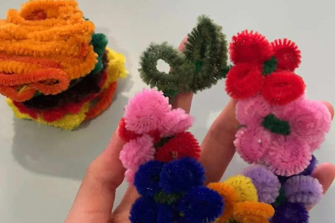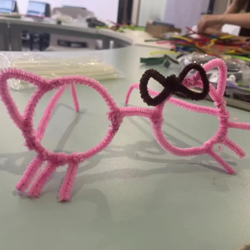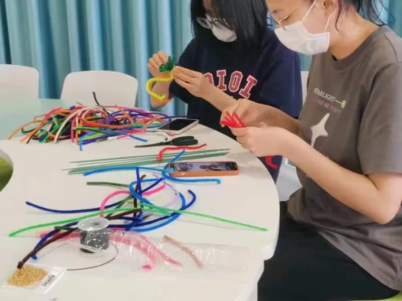 扭扭棒变成了各式各样的花朵,可爱的眼镜以及有趣的娃娃,串珠变成了各有长短又颜色不一的手链和项链。每一次的组合都是灵感的碰撞,大家用心打造的DIY作品,让原本普通的扭扭棒和串珠变得别具一格也富有意义。