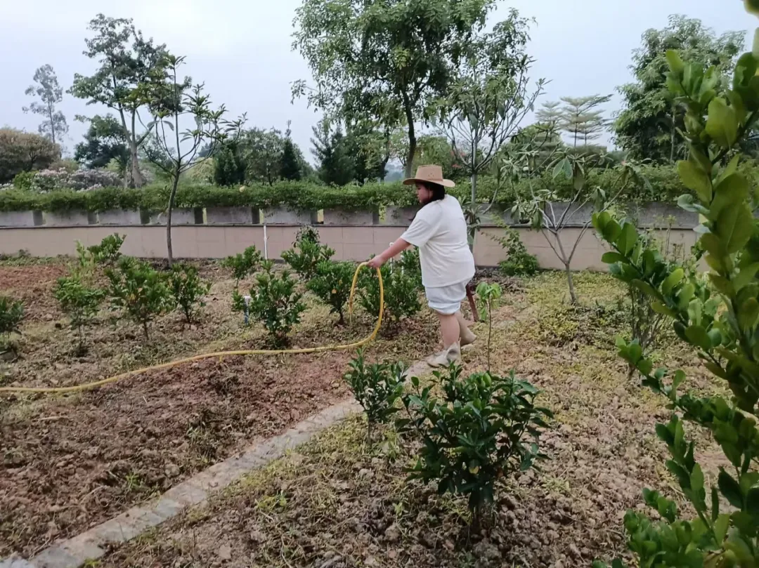 穿上鞋套,戴上草帽,拿起锄头给土地松土,挥动的每一下都包含着坚毅和汗水。
