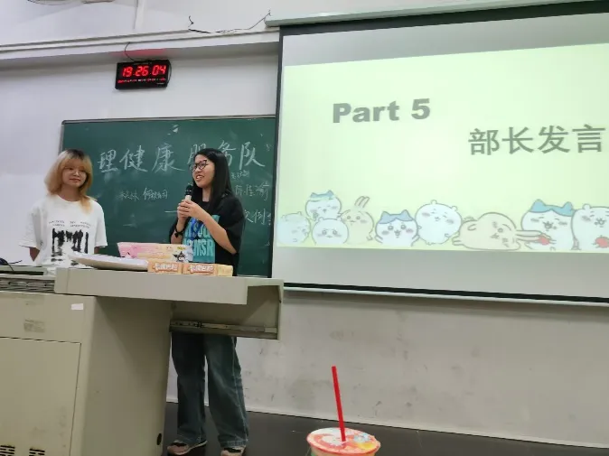 为了营造轻松愉快的氛围,部长们精心准备了小节目,与新干事们共同演唱了歌曲《泡沫》。新干事们纷纷上台进行了自我介绍。部长们还为新干事们准备了盲盒小礼品,让这份惊喜成为大家加入心理健康服务队的美好记忆。
