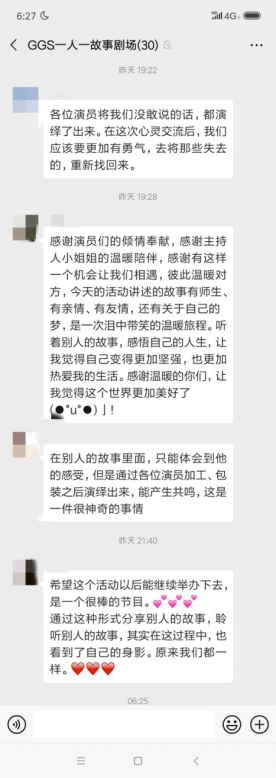 本次活动我们收到了许多观众的积极反馈,主持人春晖老师说:“今天的演出,确实有很浓重的情感,整个团体都很有正能量。”演出虽然结束,但留有很多东西待我们慢慢体会。