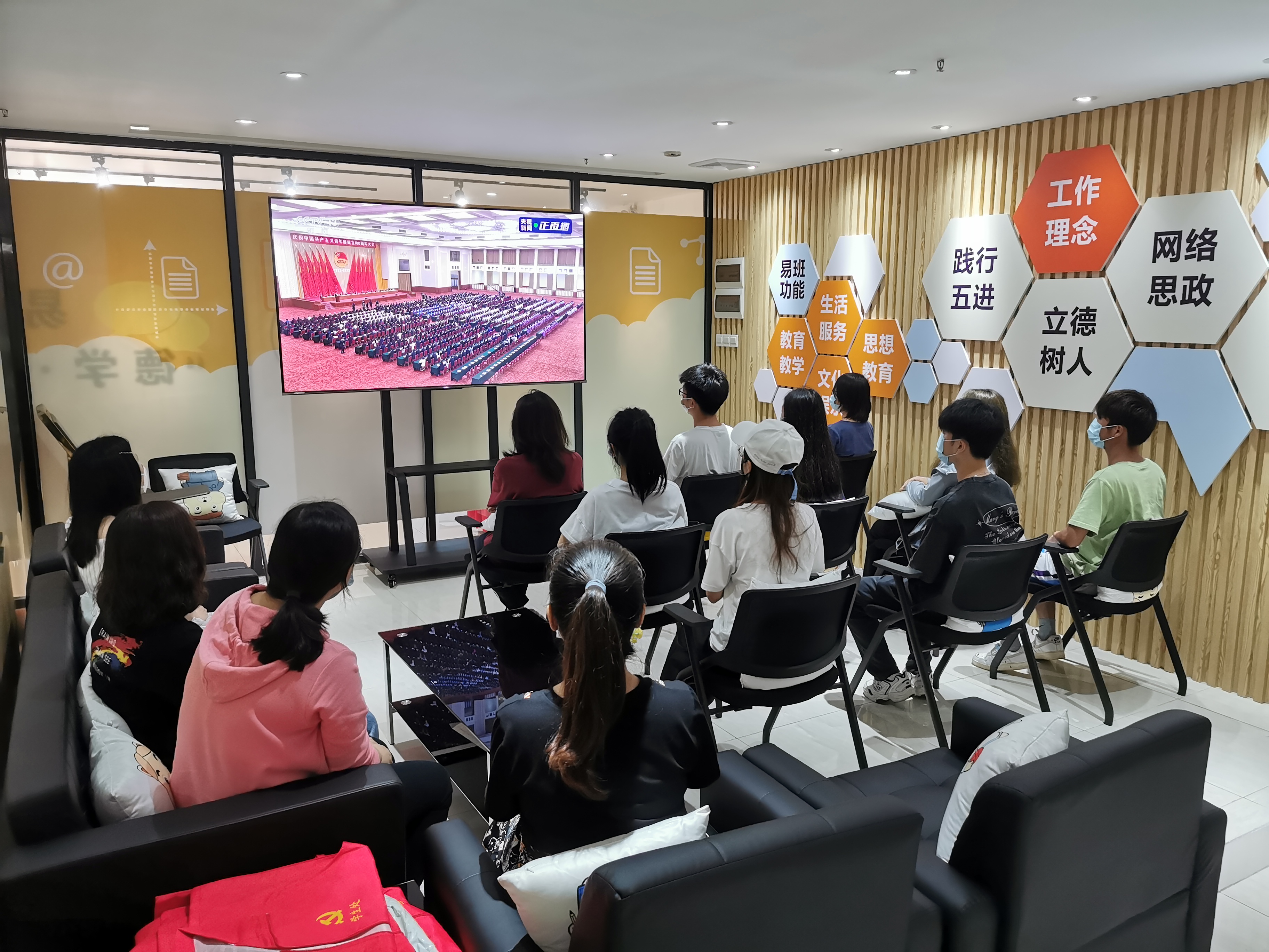 2022年5月10日上午,庆祝中国共青团成立100周年大会在北京人民大会堂隆重举行。为深入学习贯彻习近平总书记在大会上的重要讲话精神,并进一步落实立德树人根本任务,beat365学生处易班发展中心组织易班学生工作站、团委、学生资助服务站、宿管委等师生观看庆祝中国共青团成立100周年大会的现场直播。