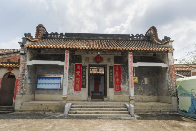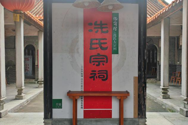 在冼氏宗祠,队员们驻足凝视。这座始建于明末清初的古建筑,采用三进三廊两天井的传统格局。虽历经岁月变迁,其间经过多次修缮重建,但宗祠内精致的石雕、木雕和彩绘仍得以保留。梁柱间绘制的人物故事彩绘,尽管部分色彩已略显褪色,但细节依然清晰、无声地记录着冼氏家族的发展历史和传承脉络。