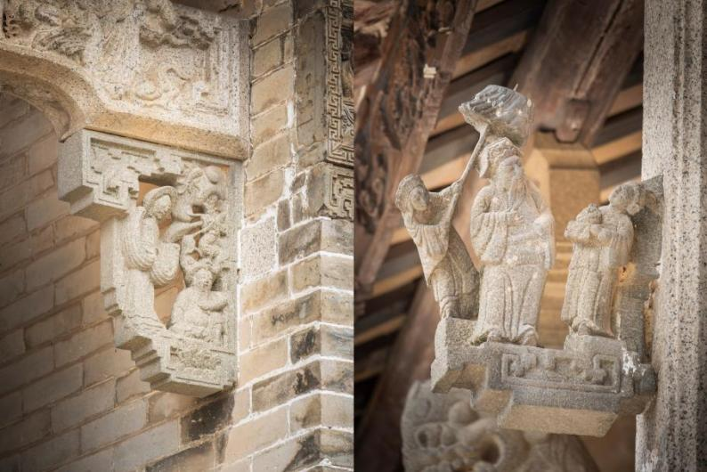 同样地,秀茂李公祠内的灰塑、彩绘,绘有山水人物,搭配清代楹联“登龙传世系,翔凤化舆图”,让祭祀与议事的场景更添几分文化温度。而如山李公祠则藏着一段姓氏传奇——朱姓以水塘换姓为李的往事,为其蒙上了一层神秘色彩。虽内部已显残破,但石木砖瓦间的雕刻,仍见证着开族太公“如山”的开拓历程。