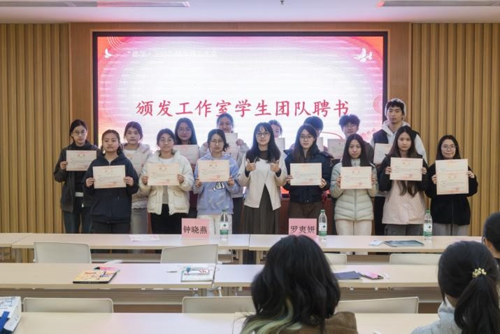 会议举行了庄重而温馨的聘书颁发仪式。工作室罗爽妍老师为第二、三批学生团队成员颁发了聘书,对同学们一学期以来的辛勤付出与成长进步给予了充分肯定。
