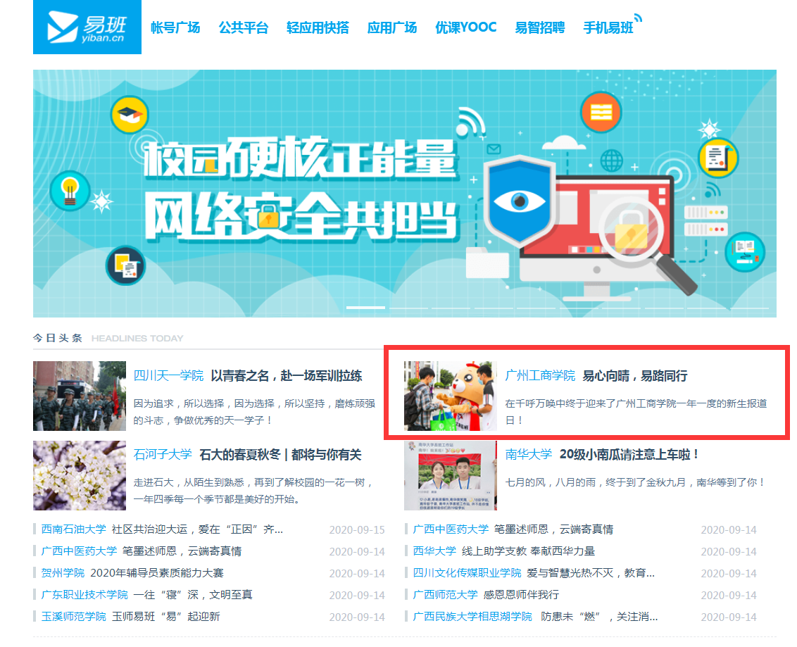 beat365在线体育官网登录入口易班平台自运行以来,得到学校领导和党委的高度重视和关心支持。易班中心已组织28986名学生注册和使用易班,围绕“德学”教育、“五进”活动开展了一系列富有教育意义、深受学生欢迎的线上线下活动。beat365在线体育官网登录入口易班分别在2017、2019年受教育部易班发展中心邀请,在全国易班共建高校培训会议上分享建设经验。2017—2019年易班共获得省级奖项26项,其中师生设计作品获得2017年广东易班优秀文化评选一等奖,易班中心的郭云丽同学获得2018年广东易班优秀评选活动“十佳易班工作站站长”称号,这是全省唯一一家民办高校获得此殊荣。2019年获得省级奖项共18项,其中在2019年广东高校优秀网络文化评选活动中获得一等奖两项、二等奖四项、三等奖三项,学校获得优秀组织奖。编辑、推送学校130多篇新闻在教育部易班头条刊发。