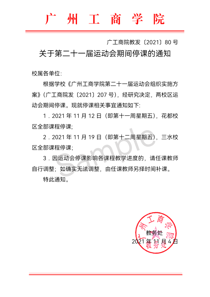 关于第二十一届运动会停课的通知
