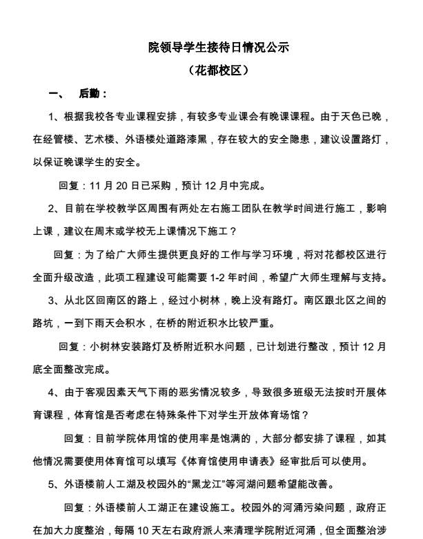 学院针对学生所提的意见,相关部门进行跟进处理,对问题的处理情况及回复意见现向学院师生进行公示。