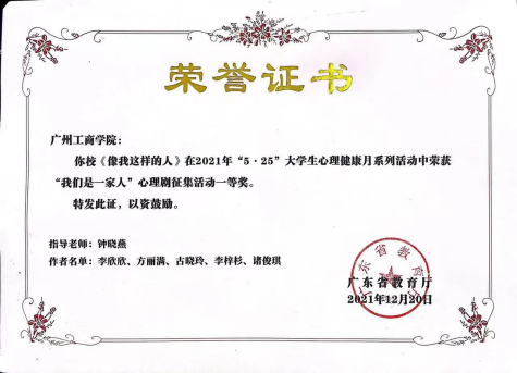 心理中心坚持“育心”与“育德”相统一,积极组织学生参加心理健康教育活动,充分发挥心理育人功能。心理中心连续两年荣获广东省高校心理健康教育与咨询工作“先进集体”;《绿洲树木,心源树人——应用园艺疗法培养大学生积极心理品质的实践探索》获广东省学生工作精品项目。心理中心教师荣获2023年广东省第六届青年教师教学大赛二等奖、2021年大学生心理健康教育课教学基本功比赛二等奖;多次荣获广东省高校心理健康教育与咨询工作“优秀心理中心主任”“先进个人”。学生在广东省高校“5·25”心理健康月系列活动、广东省“魅力讲师”预防艾滋病同伴教育大赛中获得多项荣誉。