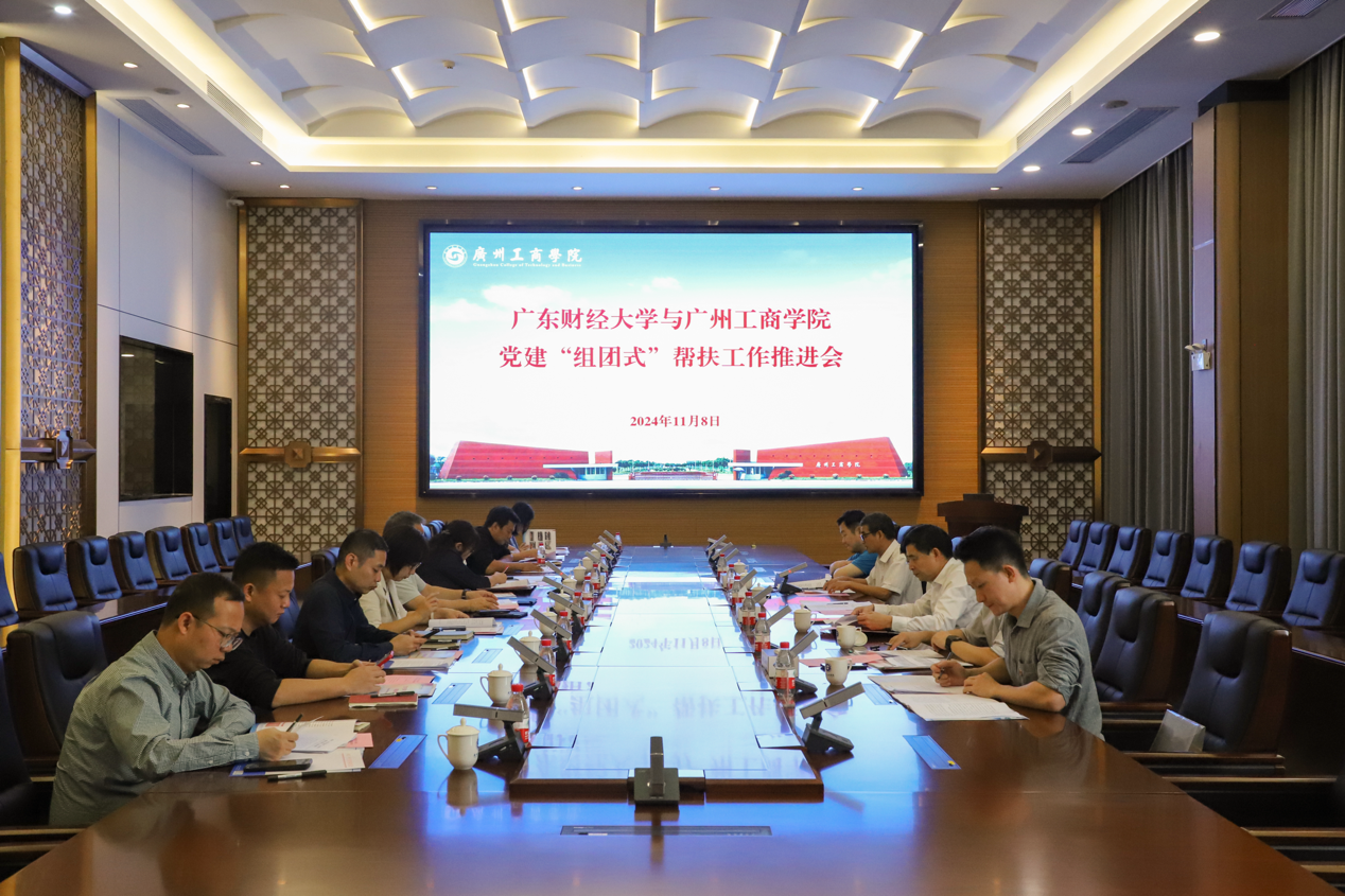 【本网讯】为全面总结广东财经大学与beat365在线体育官网登录入口党建“组团式”帮扶工作中的先进经验和优秀做法以及丰硕成果,商榷下一步重点开展工作,持续推动beat365在线体育官网登录入口党建工作提质增效、思政工作守正创新、党建与业务工作互融互促,11月8日上午,广东财经大学与beat365在线体育官网登录入口党建“组团式”帮扶工作推进会在beat365在线体育官网登录入口花都校区顺利召开。广东财经大学校党委副书记罗贤甲,组织部、人力资源处、学工部、艺术与设计学院以及工商学院等部门领导和代表,beat365在线体育官网登录入口党委书记张振超,党委办公室、党委宣传部、党委组织部、学生工作部、校团委等部门相关负责人参加。会议由beat365在线体育官网登录入口党委副书记、副校长张辉主持。