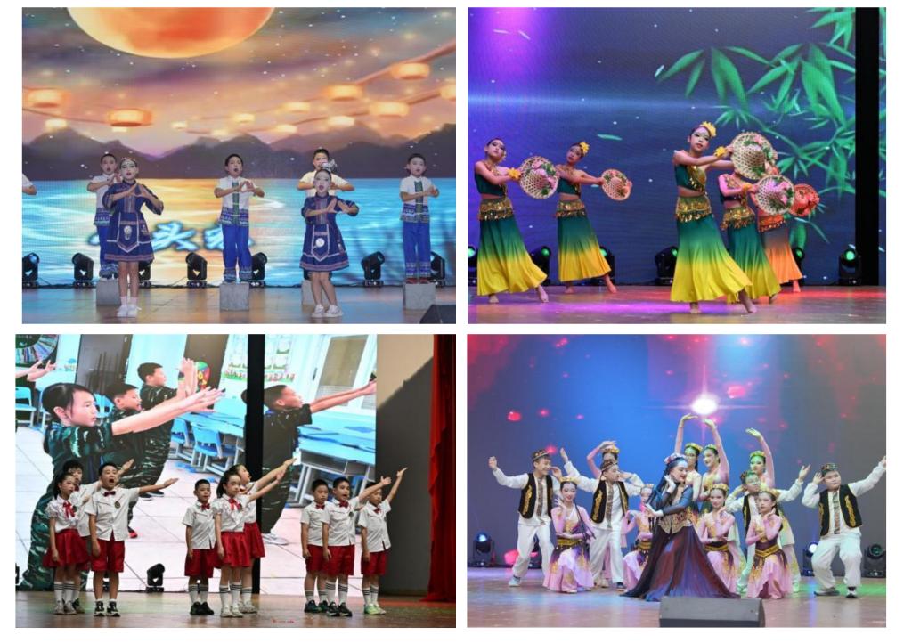 在以“石榴花开·民族同心”“雏鹰展翅·成长有光”“感恩之心·家国同行”为主题的结营仪式上,“小候鸟”们身着特色民族服装,精彩演绎了由初旭志愿服务队排练的节目。歌曲《玉盘》唱出了各族儿女共赏一轮明月的温情,傣族舞《傣笠》展现了傣家儿女的灵动,新疆舞《新疆快乐的巴郎子》传递出丰收的喜悦,朗诵《石榴籽的夏天》则道出了孩子们10天来的真切感受。每一个旋转、每一个音符,都蕴藏着欢聚的喜悦,绽放出民族同心的绚丽光彩。