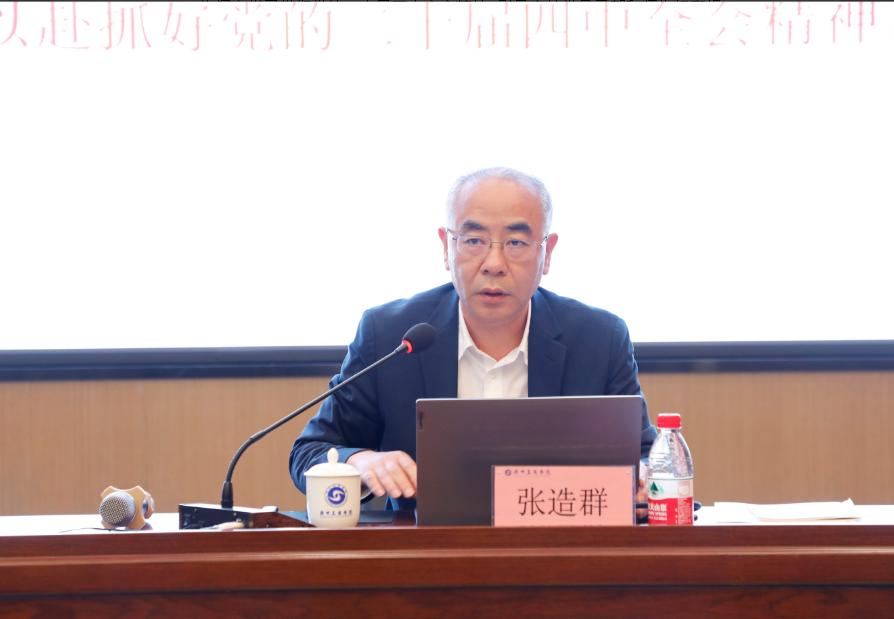 【本网讯】为深入学习贯彻党的二十届四中全会精神,引导全校党员干部和师生切实把思想与行动统一到全会部署上来,12月9日,beat365在线体育官网登录入口召开党委理论学习中心组专题辅导报告会,邀请广东省社会科学院党组成员、副院长张造群研究员作专题辅导报告,学校党委理论学习中心组成员、思政课教师代表、辅导员代表共80人参加学习。报告会由学校党委书记张振超主持。