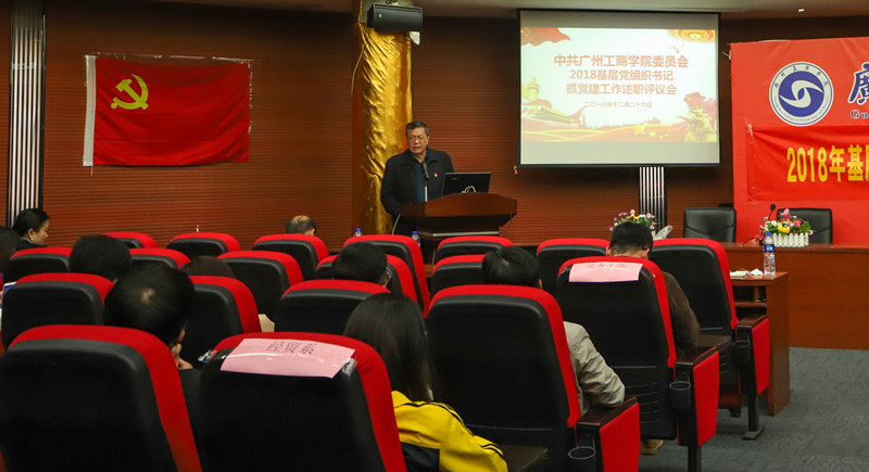 【本网讯】根据《中共广东省委组织部中共广东省委教育工委关于做好2018 年度全省高校党委书记抓基层党建述职评议考核工作的通知》(粤教工委组函〔2018〕94号) 文件精神,结合学院党建工作实际,2018年12月26日,学院党委在花都校区教学楼召开了2018年基层党组织书记抓党建工作述职评议考核工作会议。学院党委委员、纪委委员、党总支(直属党支部)、党支部全体支委,专职组织员,普通党员和群众代表等参加了会议。会议由党委副书记吴丽云同志主持。