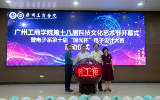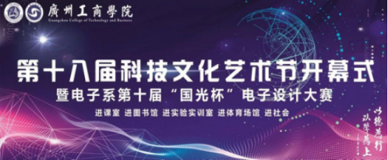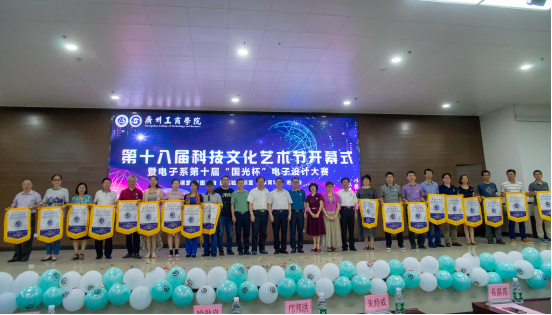【本网讯】5月17日下午,学院第十八届科技文化艺术节开幕式暨电子系第十届“国光杯”电子设计大赛在三水校区学生活动中心6楼学术报告厅举行。学院院长邝邦洪,副院长朱特威、喻勋良、易露霞,国光电器股份有限公司人事部经理范德强先生,广东省再就业与创业发展促进会会长陈洁洁女士,广东省品牌建设促进会副会长、花都新闻中心主任胡兴龙博士等出席了开幕式。
