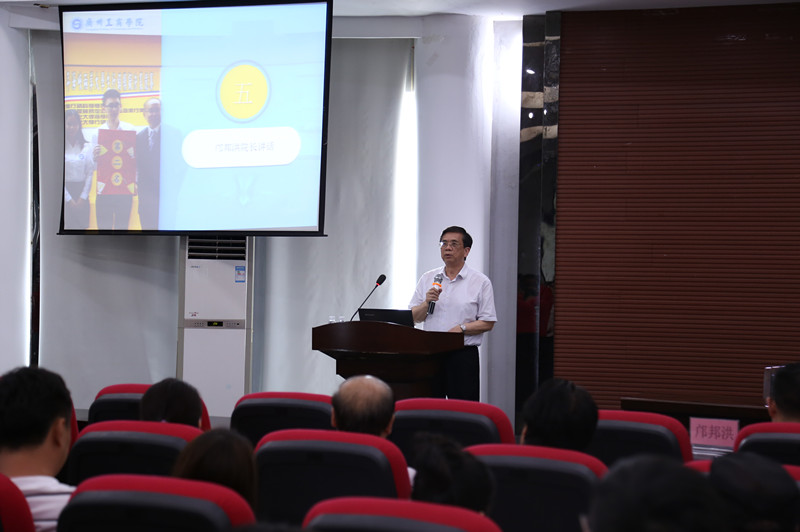 学院院长邝邦洪做总结发言。他认为本次动员大会内容丰富、形式多样,同时他对今年的招生工作提出了四点工作要求:一、要高度重视招生工作,招生工作涉及学校的长远发展及广大师生的利益。同时,他强调,我们招多少学生,就要把多少学生培养好,让他们今后能够稳步走上社会,能够更好地为社会做出贡献。二、要认真做好今年的招生宣传工作,其中包括报刊、网络的宣传工作,尤其是要在在校生中做好宣传工作。三、要严格按照招生规范要求,择优录取新生。四、招生办,各系、职能部门要通力合作,齐心协力,顺利完成今年的招生任务。