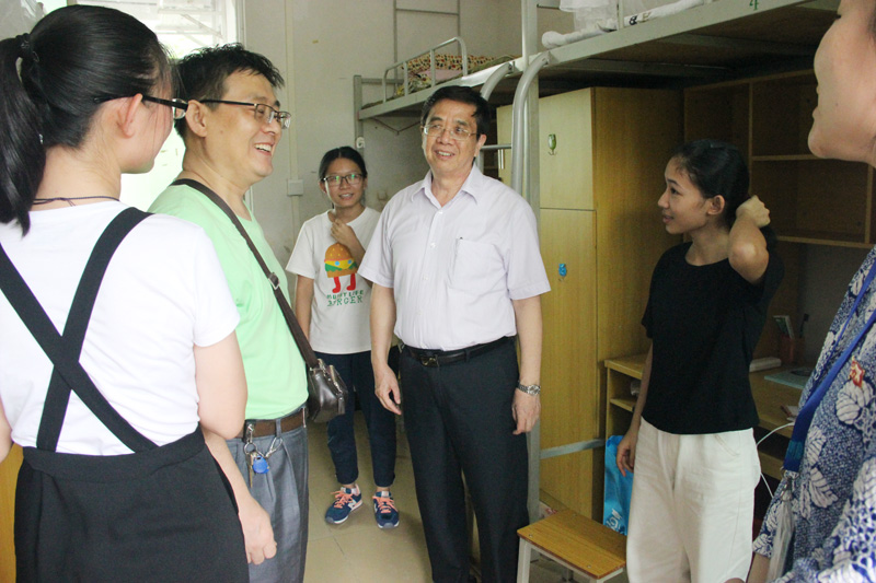 3、4日下午,院长邝邦洪,党委书记、副院长钟伟强,副院长乔丽媛、吴宏岳、朱特威等院领导在学院相关部门负责人的陪同下走访了新生宿舍,检查新生住宿情况,并与提前报到的新生、家长亲切交流,了解新生的需求,解除家长的后顾之忧。
