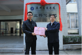 【本网讯】2015年12月28日上午,学院在花都校区举行“beat365在线体育官网登录入口创业孵化基地”揭牌仪式。出席揭牌仪式的领导和嘉宾有学院院长邝邦洪教授、主管教学副院长乔丽媛教授、中国就业促进会专家委员会副主任陈斯毅先生、台湾粮山好汉食品集团董事长赵利先生。学院各教学单位、教务处、实验实训中心负责人和相关工作人员参加了揭牌仪式。揭牌仪式由乔丽媛副院长主持。