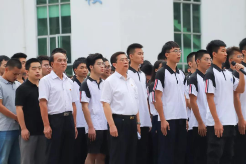【本网讯】为了进一步加强新时代大学生爱国主义教育,激发爱国爱党热情,引导大学生树立正确价值观,9月2日上午,我院在厚德广场举行了以“我为祖国升国旗”为主题的升旗仪式。学院院长邝邦洪教授、三水校区管委会主任何国林、党员教师代表以及2018级全体学生4000多人参加了升旗仪式,团委书记洪卫烈主持。