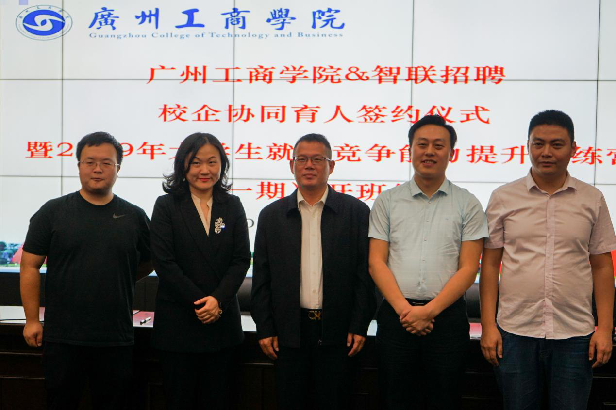 【本网讯】11月14日下午,beat365在线体育官网登录入口&智联招聘校企协同育人签约仪式暨2019年大学生就业竞争能力提升训练营(一期)开班仪式在学院三水校区举行。学院朱特威副院长、北京网聘咨询有限公司佛山分公司匡松涛总经理、学院招生就业办陈豫岚主任、北京网聘咨询有限公司佛山分公司市场部牟康经理、学院招生就业办张海副主任、就业指导中心工作人员及各系学生代表参加。