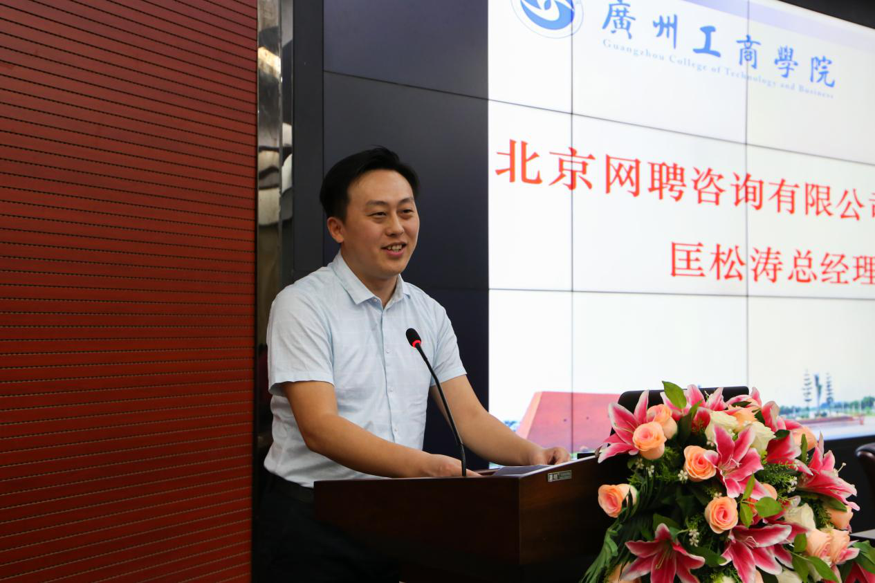 北京网聘咨询有限公司佛山分公司总经理匡松涛介绍了智联企业的基本情况并表示智联会为高校毕业生搭建桥梁,提供优质的就业平台,实现毕业生全面就业。