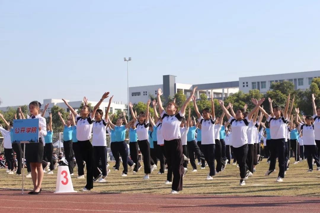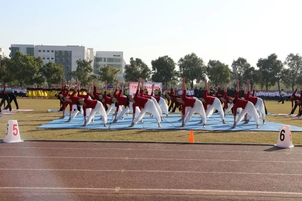 本届运动会是学院升本后举办的第六届运动会。在开幕式上,选项班学生分别进行了瑜伽、体育舞蹈、散打、武术、啦啦操表演,三水校区十个教学单位进行了第九套广播体操比赛,