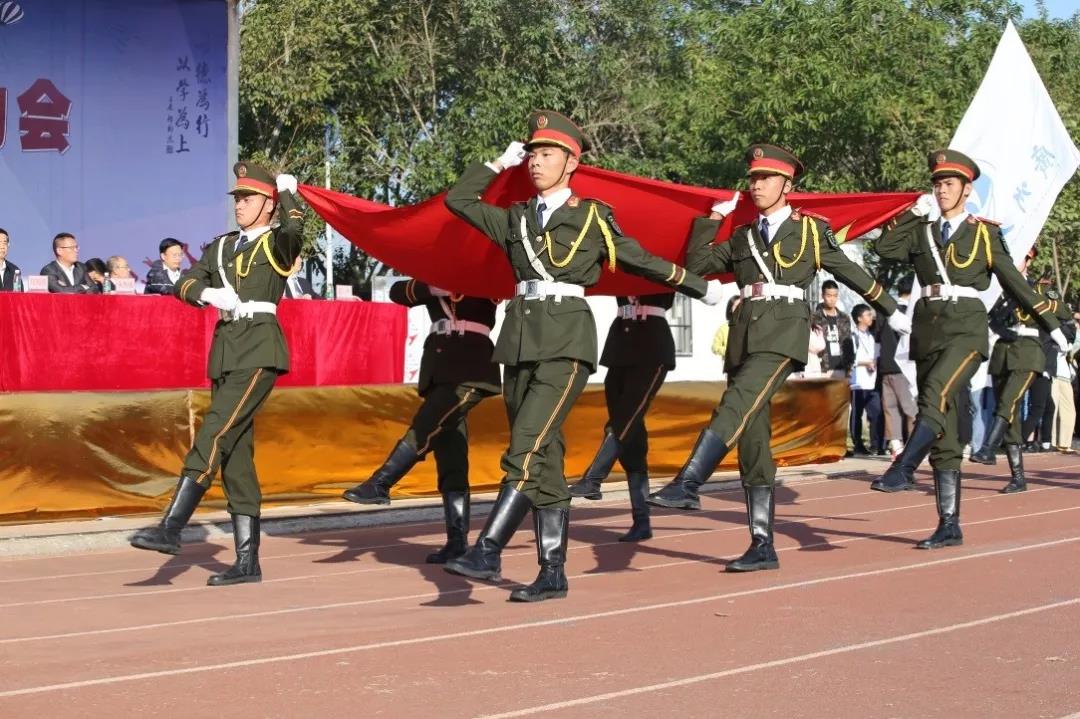 雄赳赳,气昂昂。在《义勇军进行曲》的奏唱中,创业培训学院、电子信息工程系、公开学院、工商管理系、国际教育学院、计算机科学与工程系、继续教育与培训学院、会计系、物流系、智慧冷链产业学院十个教学单位的方阵队有序进场。全体肃立,升国旗、奏国歌。
