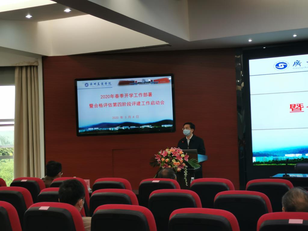 邝院长从认真抓好疫情防控工作、认真抓好教学和评建工作、认真开展学院“十四五”规划前期研究及编制工作、认真加强师德师风的建设工作、认真加强学生的思想政治教育工作五个方面进行了本学期重点工作部署。他明确目前疫情势头得到初步遏制,但全国疫情发展的拐点还未到来,我们要进一步抓好疫情防控工作。他表示因疫情而实施的网上教学是一种全新的变革,希望这一次教与学的改革创新,教学方式的变革取得成功。他从努力实现“四个促进”、达到“三个基本”、切实体现“两个突出”的办学定位、有效进行“一个引导”四个方面阐述合格评估对学校发展的作用。他强调编制好与执行好学院“十四五”发展规划、学科专业发展规划、教师队伍建设规划、信息化建设规划、校园建设规划将有助于学院“十四五”期间的发展。他指出,加强师德师风建设和学生思想政治教育是一项常抓不懈的工作。