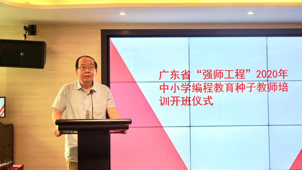 同时参加开班式的还有广东第二师范学院计算机科学系郑胜儒教授、广东第二师范学院计算机科学系主任人工智能应用研究专家周如旗教授、中央电化教育馆研究员、中国教育技术协会学术委员会副主任、中国教育协会秘书长刘雍潜教授,他们也分别进行了精彩的发言。