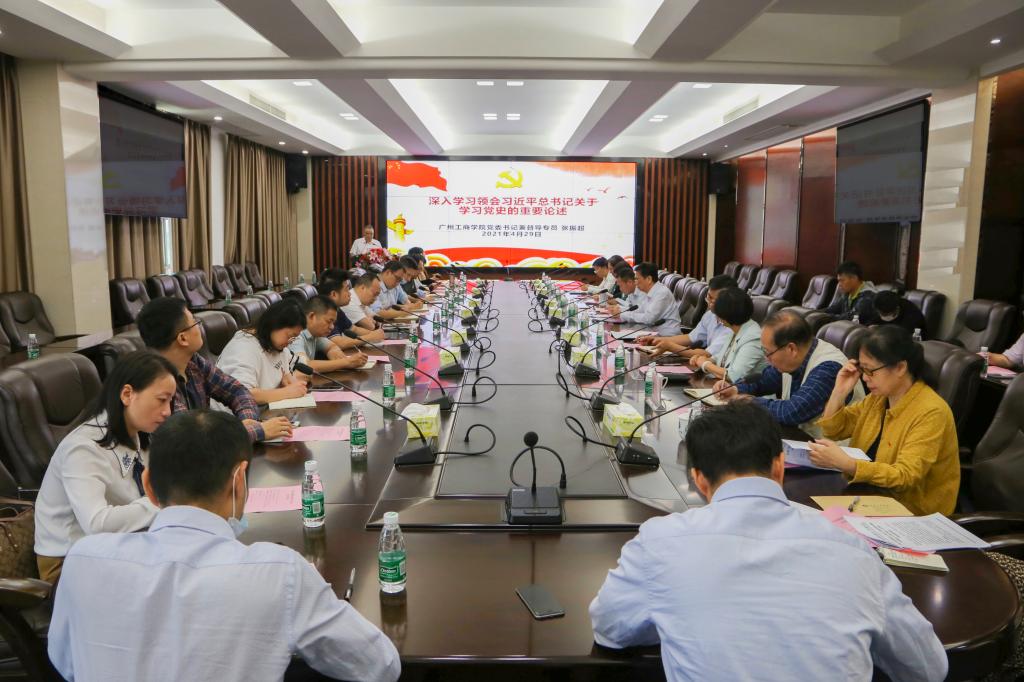 【本网讯】4月29日上午,学校党委理论学习中心组召开党史学习教育专题会,深入学习领会习近平总书记关于学习党史的重要论述,扎实推进领导干部理论学习,推动工作实践。学校领导班子成员、两委委员、二级党组织负责人参加学习。党委书记张振超作领学发言,会计学院党总支书记全桂艳、管理学院党总支书记邹剑峰、马克思主义学院党总支副书记周静作交流发言。
