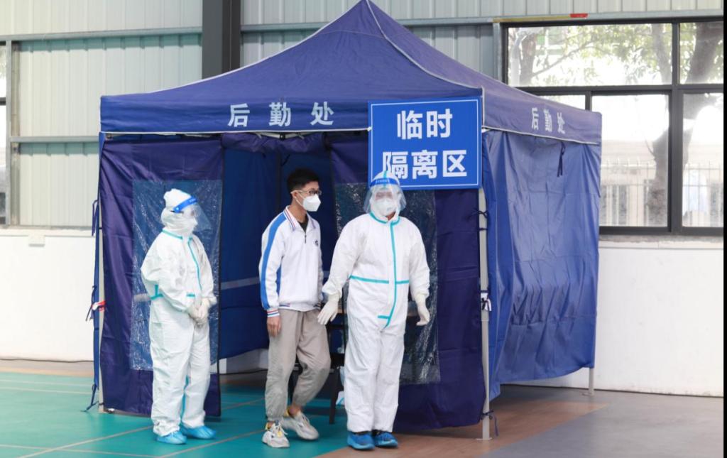 (图为李同学被带往负压救护车待转运至集中隔离点)