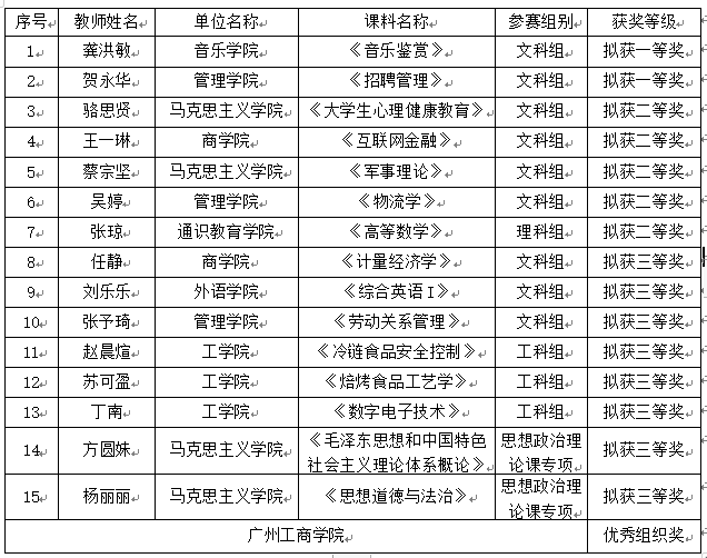【本网讯】8月28日至29日,广东省第六届高校(本科)青年教师教学大赛总决赛在广州举行。beat365推荐的15名选手全部获奖,其中拟获一等奖2项、二等奖5项、三等奖8项,并获评优秀组织奖单位,总获奖数排名全省并列第1,入围省现场决赛数全省并列第7,一等奖获奖数全省排名并列第6(龚洪敏老师参加了总决赛,每组前5名)。beat365与华南师范大学、华南农业大学、广东工业大学、南方医科大学5个优秀组织奖代表在总决赛颁奖大会领奖。