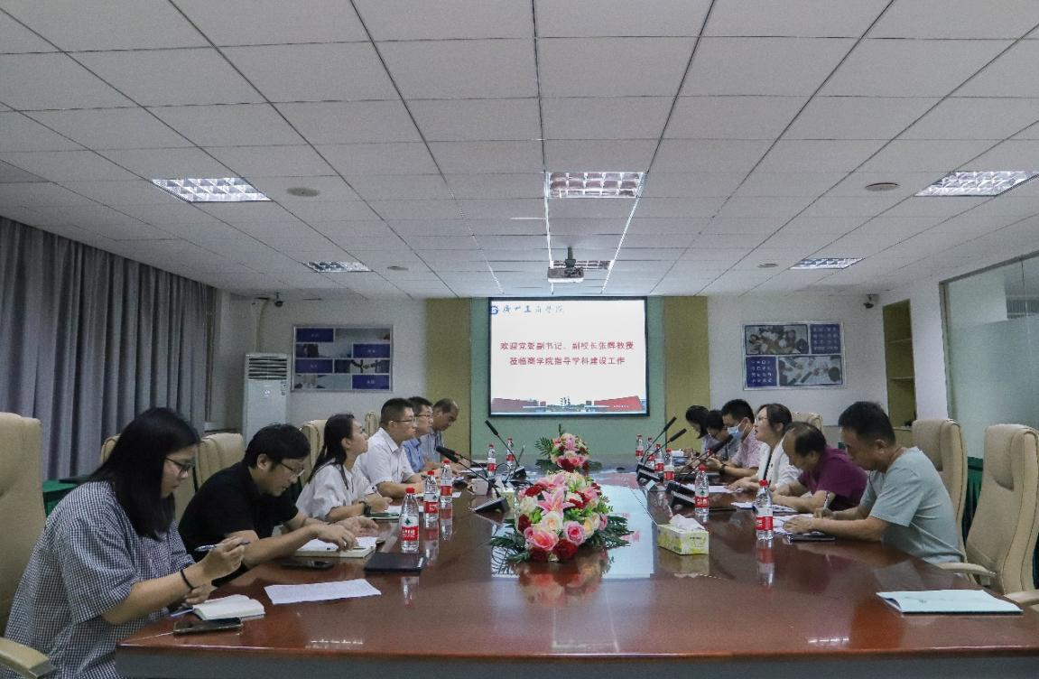 【本网讯】为深入学习贯彻习近平新时代中国特色社会主义思想主题教育,大兴调查研究之风,做好商学院学科建设工作,6月6日下午,校党委副书记、副校长张辉教授带领科研处、图书馆相关负责人,到商学院开展主题教育专题调研、学科建设与申硕专项调研。商学院院长林波、副院长张娜,李勤昌教授、程飞博士等参加。调研会由商学院副院长程振锋主持。