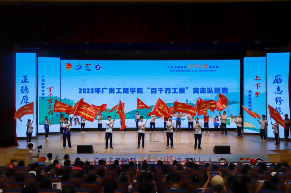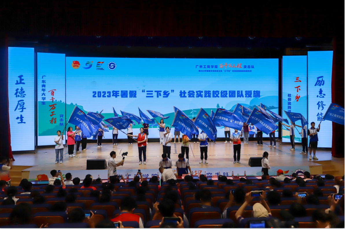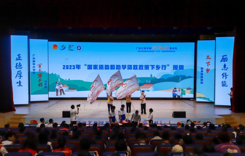 随后,学校领导为学校“百千万工程”青年突击队、校级“三下乡”社会实践团队、国家资助和助学贷款政策下乡行团队授旗。现场还开展了宣誓仪式、安全承诺书签署、安全教育培训会等环节,确保暑期“三下乡”社会实践活动顺利开展。