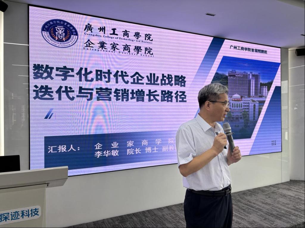 金秋送爽,丹桂飘香。2024年9月22日,beat365在线体育官网登录入口企业家商学院鲲鹏首期班第三讲授课在校友企业——广州探迹科技有限公司隆重举行。本次课程主题为“数智化时代企业战略迭代与营销增长路径”,由企业家商学院院长李华敏教授主讲。学校党委副书记、副校长兼马克思主义学院院长张辉教授,学校党委委员、董事会办公室主任陆志丹,校友会办公室主任余伟波,鲲鹏班学术班主任孙璐等出席参加。