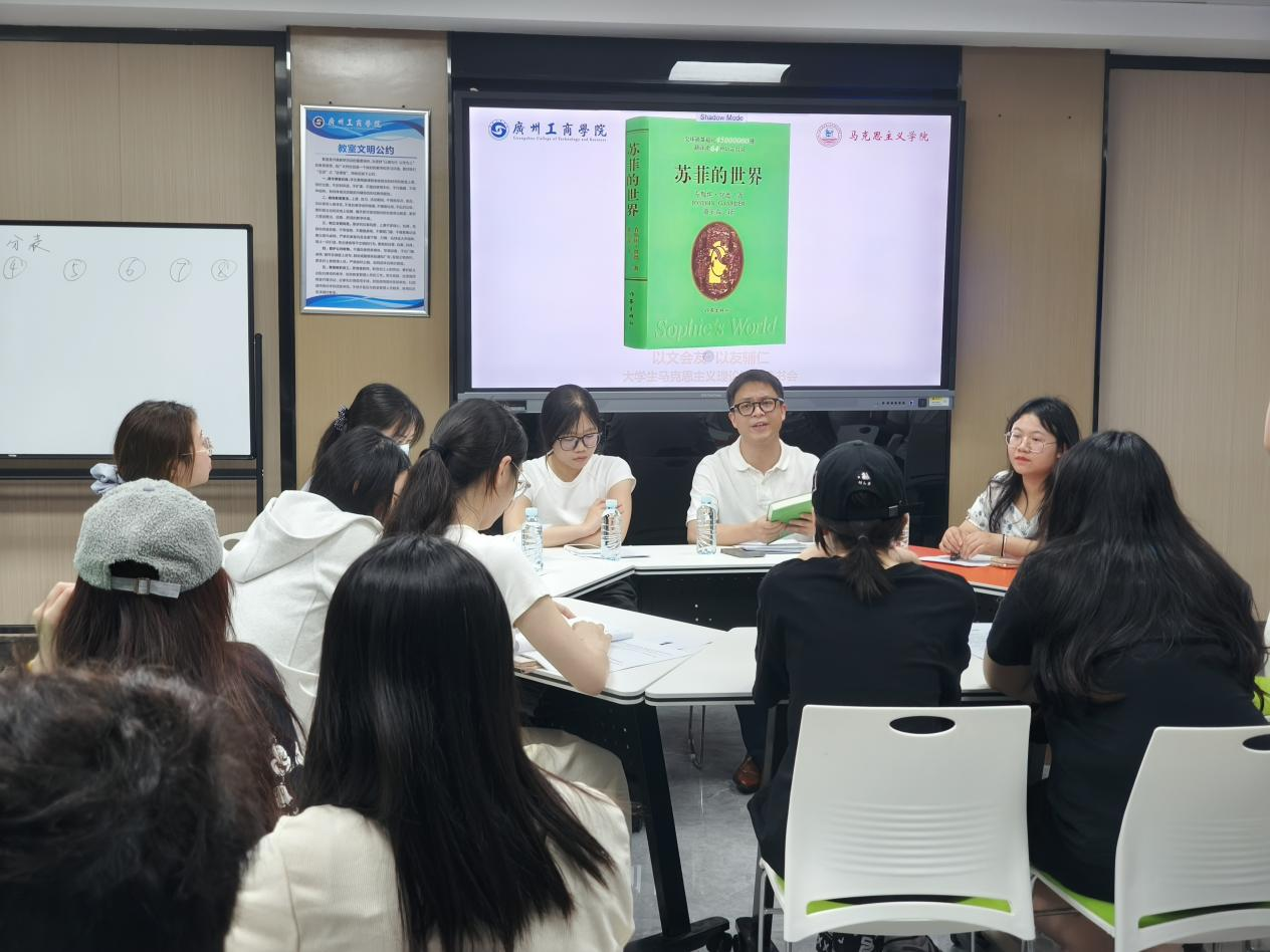 【本网讯】为深入学习贯彻党的二十届三中全会精神,深化弘扬“以德为行 以学为上”教育理念,积极践行“五进”之进图书馆教育实践活动。在“4·23世界读书日”来临之际,通过思想碰撞与经典共读,激发学生阅读兴趣,营造浓厚校园阅读氛围,4月21日晚上,研读《苏菲的世界》活动在三水校区举行。本次活动由马克思主义学院兼读书会指导老师李功清副教授领读,读书会指导老师陈雯菁主持,学生工作部梁梓雯老师、H.O.M.E.“一站式”学生社区邓子琳老师以及大学生马克思主义理论研究读书会成员参加活动。