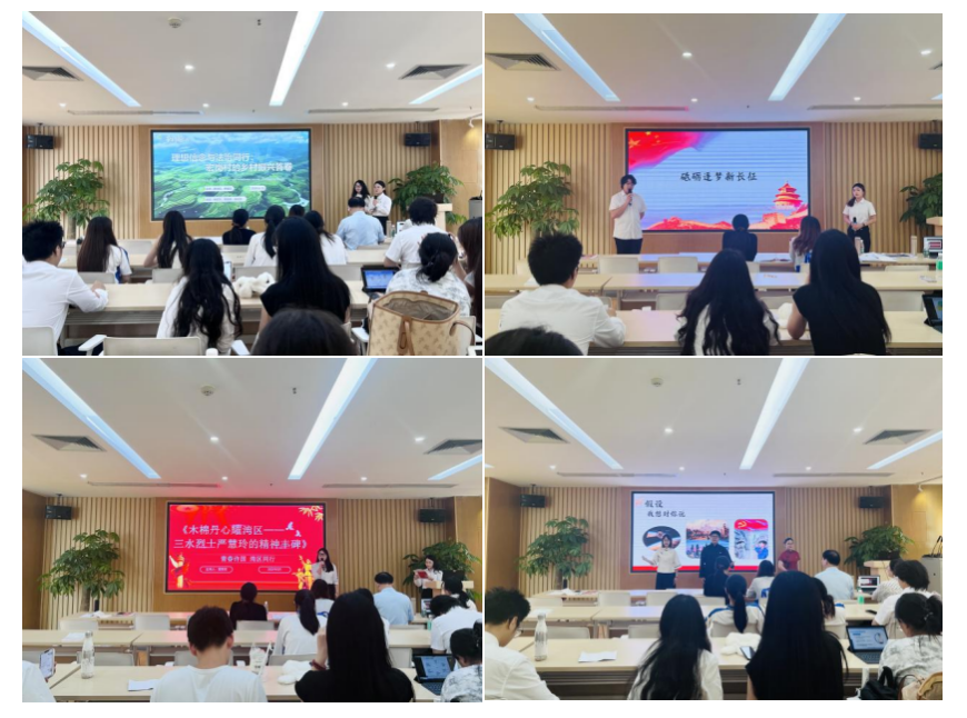 决赛现场,各参赛小组围绕丰富主题展开精彩演讲。有的以“乡村振兴”为主题,结合广州花都区赤泥镇的案例,阐述产业转型升级与青年参与的重要性,展现乡村振兴的活力与希望;有的通过佛山南海宏岗村的实践,讲述党建引领、法治护航下的乡村发展路径。还有小组聚焦“理想信念实践”“三水英雄铸丰碑”“穿越时空的三封家书”等主题,从不同维度诠释理想信念、革命精神与时代使命。选手们结合案例、视频、角色演绎等形式,充分结合自身实践、立足区域特色,在讲述过程中饱含真挚炽热的情感,呈现了一个个精彩的瞬间,既展现了他们对理论与实践结合的深度理解,更体现了青年学生的独特风采。