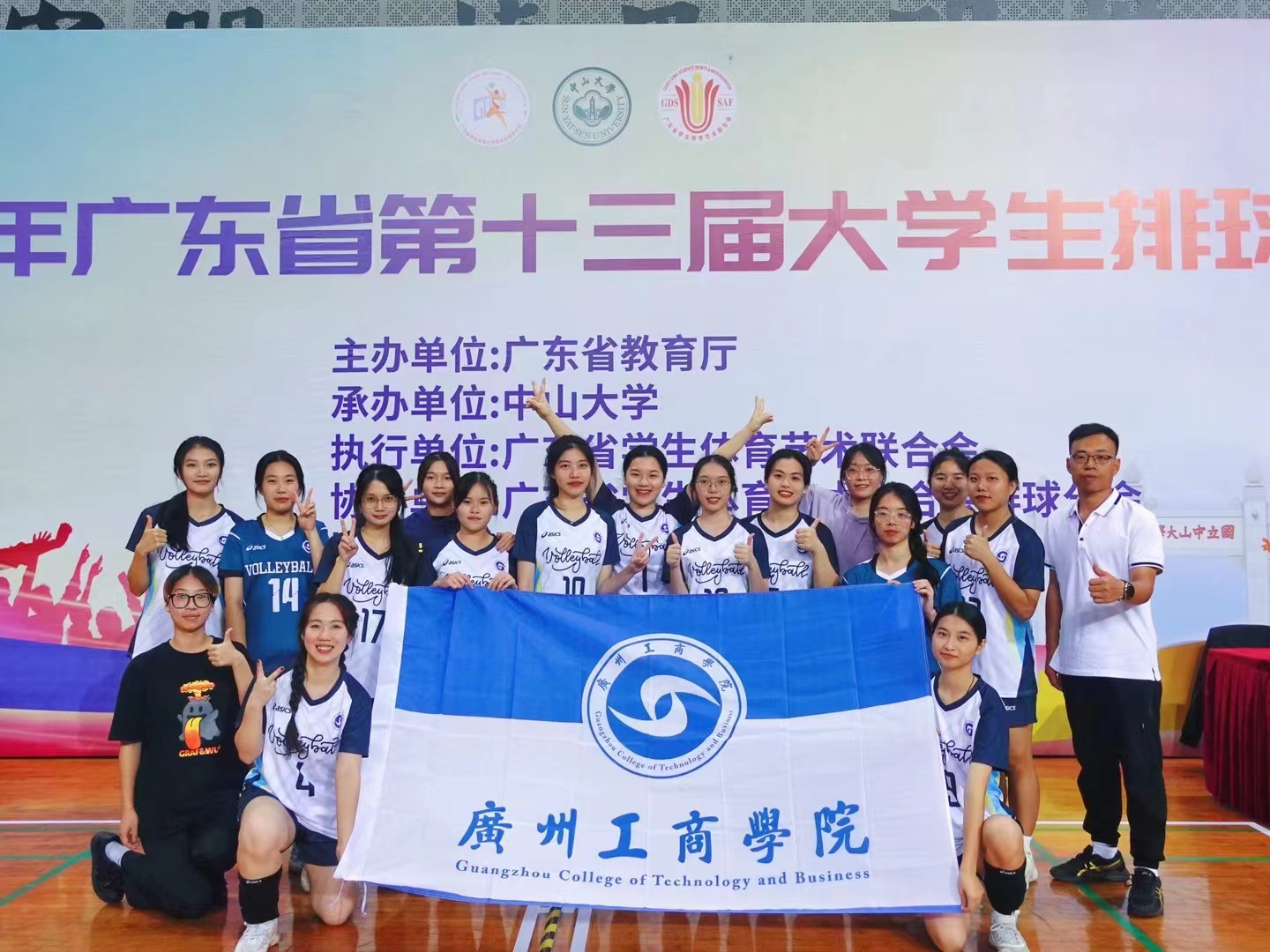 【本网讯】由广东省教育厅主办,中山大学承办的2023年广东省大学生排球联赛于2023年11月17日-12月13日在中山大学(大学城校区)举行,本届比赛设置了甲A、甲B、乙A、乙B组和丙组。学校与广东医科大学、广东药科大学、广州大学等20所院校参加了甲B组的比赛,最终学校女排获得甲B组第五名。