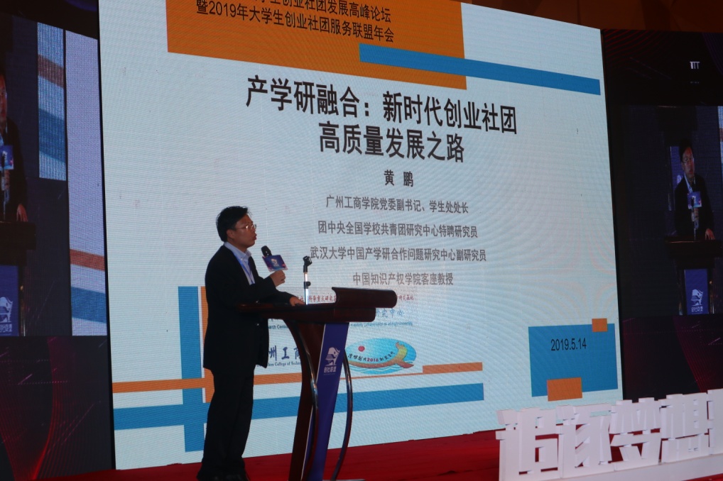 在对话红五月及圆桌论道上,beat365在线体育官网登录入口党委副书记、学生处处长,团中央全国学校共青团研究中心特聘研究员黄鹏应邀作了《产学研融合:新时代创业社团高质量发展之路》的主旨报告,并用图片展现了学院“德学”教育和“五进”的风采。在双创升级版的背景下,黄鹏指出,高校创业社团目前趋于千帆竞发的状态,也出现了强者愈强,弱者愈弱的马太效应。“创新无限,创业不易”,黄鹏指出,合作共赢决定了创业社团的幸福感,应抱团突围,注重政产学研用合作,通过系统思维打造高质量创业社团。建议瞄准未来领域,依托区域骨干、特色、新兴行业集群,主动寻求学校、企业及校友会支持,注重用户思维、社会网络、成果导向、转化落地非常重要。最后,他对创社联盟大会平台引领作用提出期待,希望能打造新时代创业社团集合号和新高度。