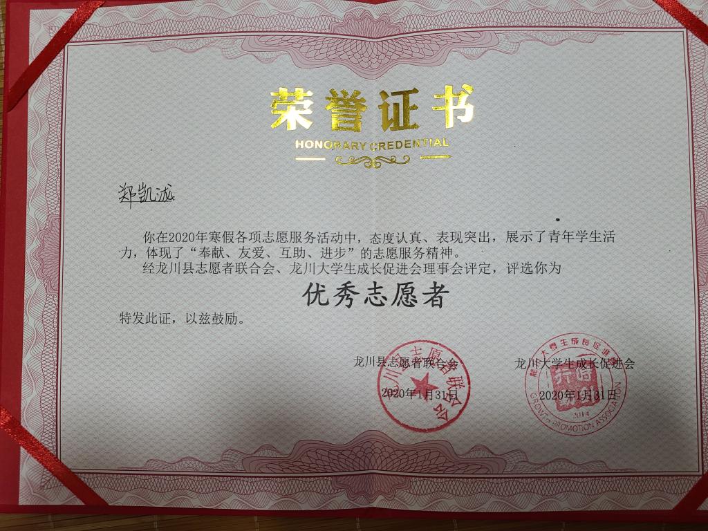 此次义教活动受到了龙川县志愿者联合会以及促进会的高度重视,他们对此次义教活动给予了肯定。郑凯泷也在此次活动中表现优异,被授予优秀志愿者称号。