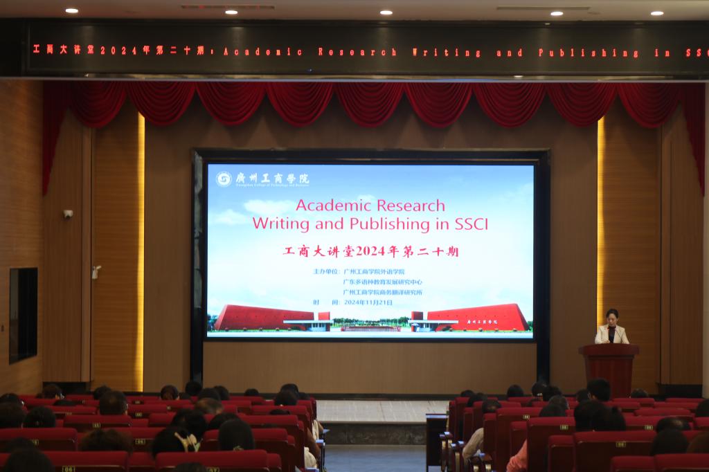 【本网讯】11月21日,学校工商大讲堂2024年第二十期学术讲座在beat365在线体育官网登录入口花都校区举行,马来西亚玛拉工艺大学的卡尔提亚尼·苏普拉马尼亚姆(Kaarthiyainy Supramaniam)博士应邀进校担任主讲嘉宾,讲座主题为学术论文写作与发表。讲座由外语学院副院长邢佳平副教授主持,外语学院百余名教师参加。