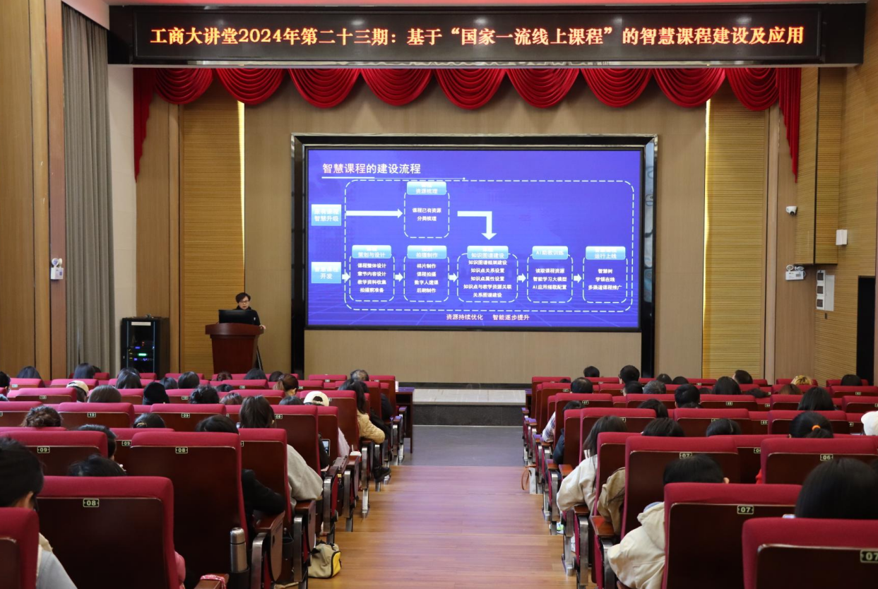 在讲座中,周丽教授分享了她十年来打造本科一流课程的心得,并基于国家一流线上课程的案例,讲解了如何将其升级为智慧课程。她详细阐述了智慧课程的定义、初步成果以及五个关键要素;如何通过运用知识图谱、AI工作台和AI助教等前沿技术,实现教学内容的结构化、精准化和个性化,以及如何增强教学质量和效率。为外语学院的工作提供了宝贵的参考和指导。