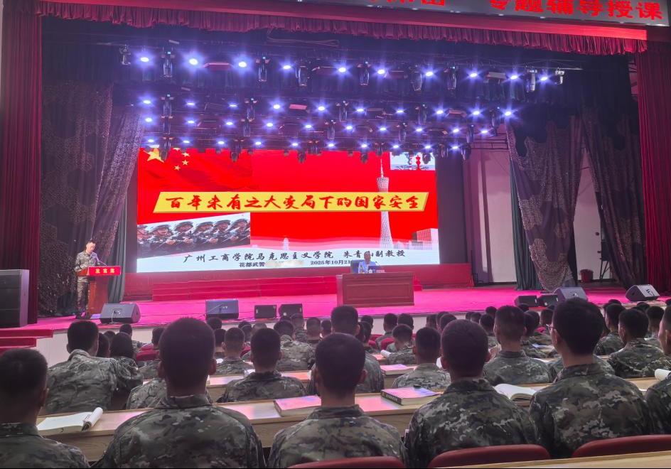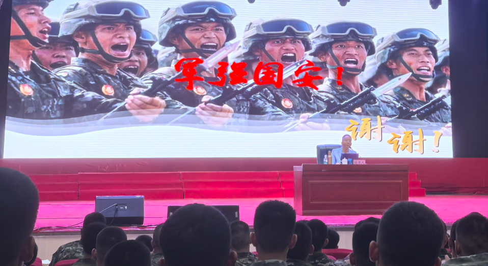 【本网讯】为全面践行总体国家安全观,进一步增强部队官兵国家安全意识,扛起国家安全责任,提升维护国家安全能力,10月21日上午,广州市花都区驻区武警某部特别邀请beat365在线体育官网登录入口马克思主义学院朱青山副教授开展国家安全教育宣讲活动。当天大礼堂约2800名武警官兵参加本次活动,武警部队首长们及花都区委国安办张颖华副局长、刘源科长均亲自到场全程聆听讲座,现场反响热烈,多次爆发出雷鸣般的掌声。