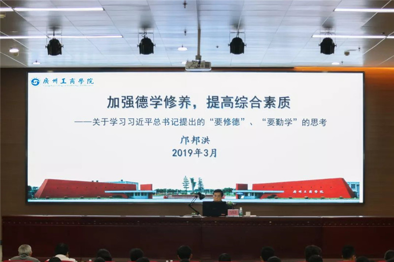 邝邦洪院长强调,做人做事的第一位是崇德修身,这是由社会、家庭及自身的需要决定的。接着,邝院长向现场同学讲述了加强道德修养的实践性,教导同学们要明确什么是道德,并要努力做到知行并举、修德不懈。